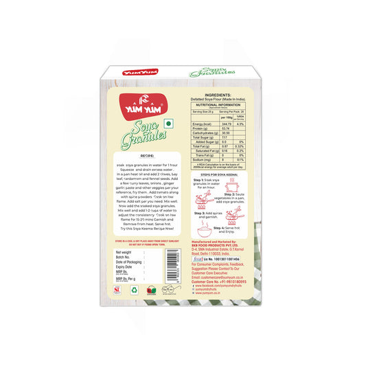 Yum Yum Breakfast Essentials are protein-rich soya pieces, macaroni, vermicelli, poha etc offering a substantial surface and flexible flavor for various dishes, ideal for veggie lover and vegetarian counts calories.